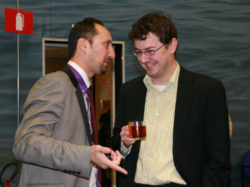 Een geanimeerd gesprek met Veselin Topalov tijdens Tata Steel Chess Tournament 2012.